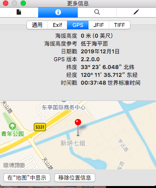 该图片的相关信息立刻直接显示了出来,甚至包括详细的经纬度,同时可以直接在地图上查看。